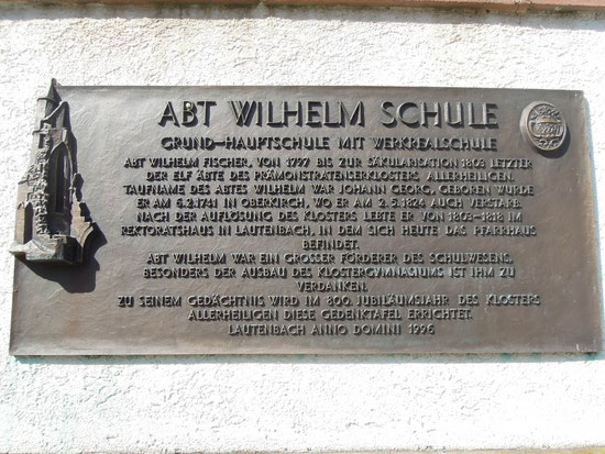 Abt Wilhelm Fischer war von 1797 bis zur Säkularisation 1803 letzter der elf Äbte des Prämonstratenserklosters Allerheiligen. Taufname des Abtes Wilhelm war Johann Georg. Geboren wurde er am 06. Februar 1741 in Oberkirch, wo er am 02. Mai 1824 verstarb. Nach der Auflösung des Klosters lebte er von 1803 bis 1818 im Rektoratshaus in Lautenbach, in dem sich heute das Pfarramt befindet.